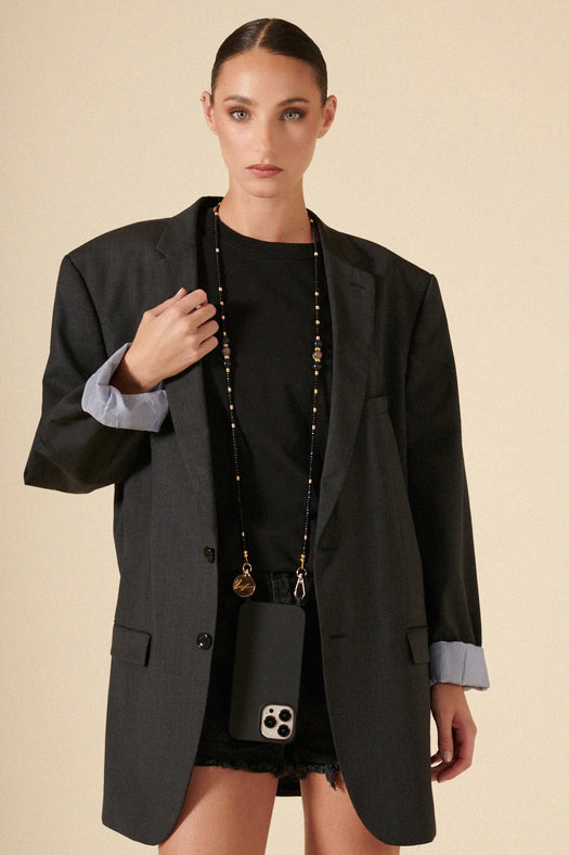 Chaine téléphone - Iris Perle noires 120 cm